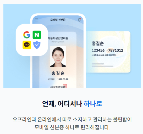 모바일신분증은 우리가 스마트폰을 항상 가지고 다니기 때문에 언제 어디서든 신분증을 확인할 수 있습니다. 복잡한 과정 없이 스마트폰으로 신원을 증명할 수 있어 행정 업무나 거래에서 시간을 절약할 수 있습니다.