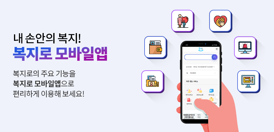 요즘은 스마트폰을 통해 '복지로 모바일앱'을 통해 내 손 안에서 복지로의 주요 기능을 편리하게 이용할 수 있습니다.