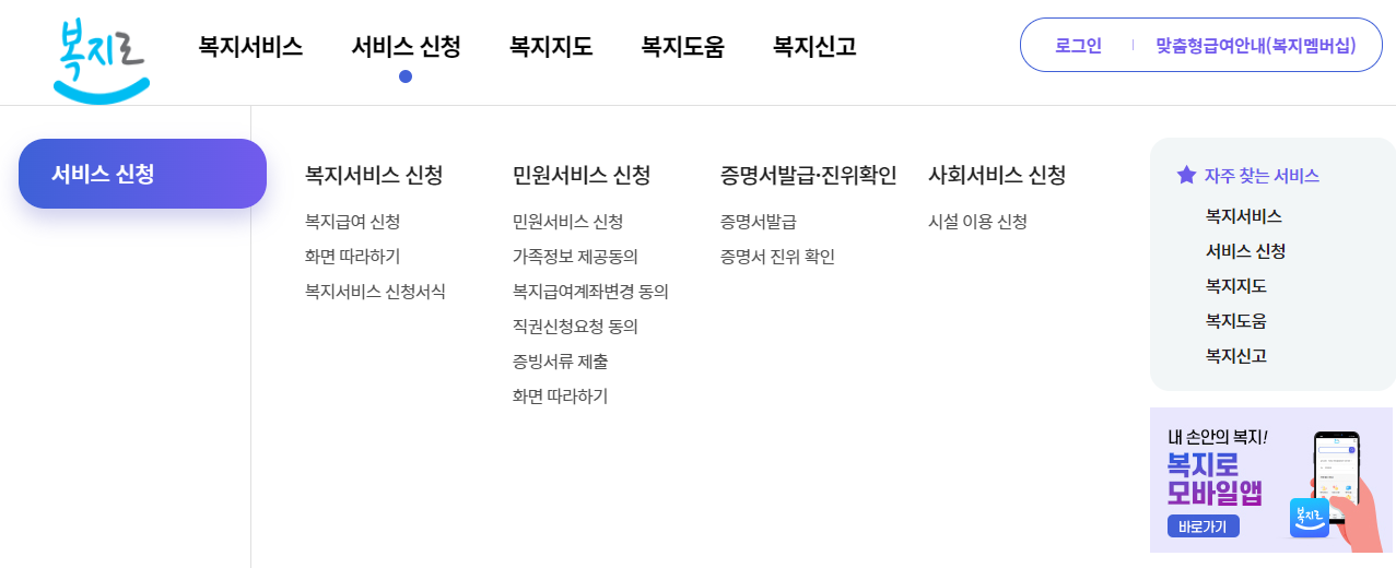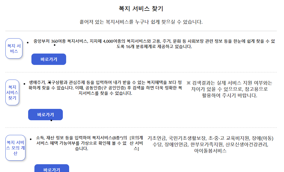 3. 복지서비스 (내 상황에 맞는 복지 서비스 검색 및 서비스 정보 확인 가능)