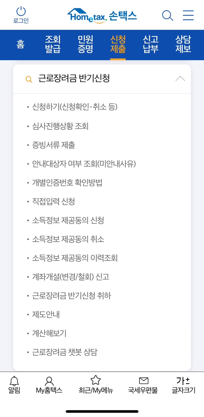 - 로그인: 근로자는 국세청 웹사이트에 로그인합니다.