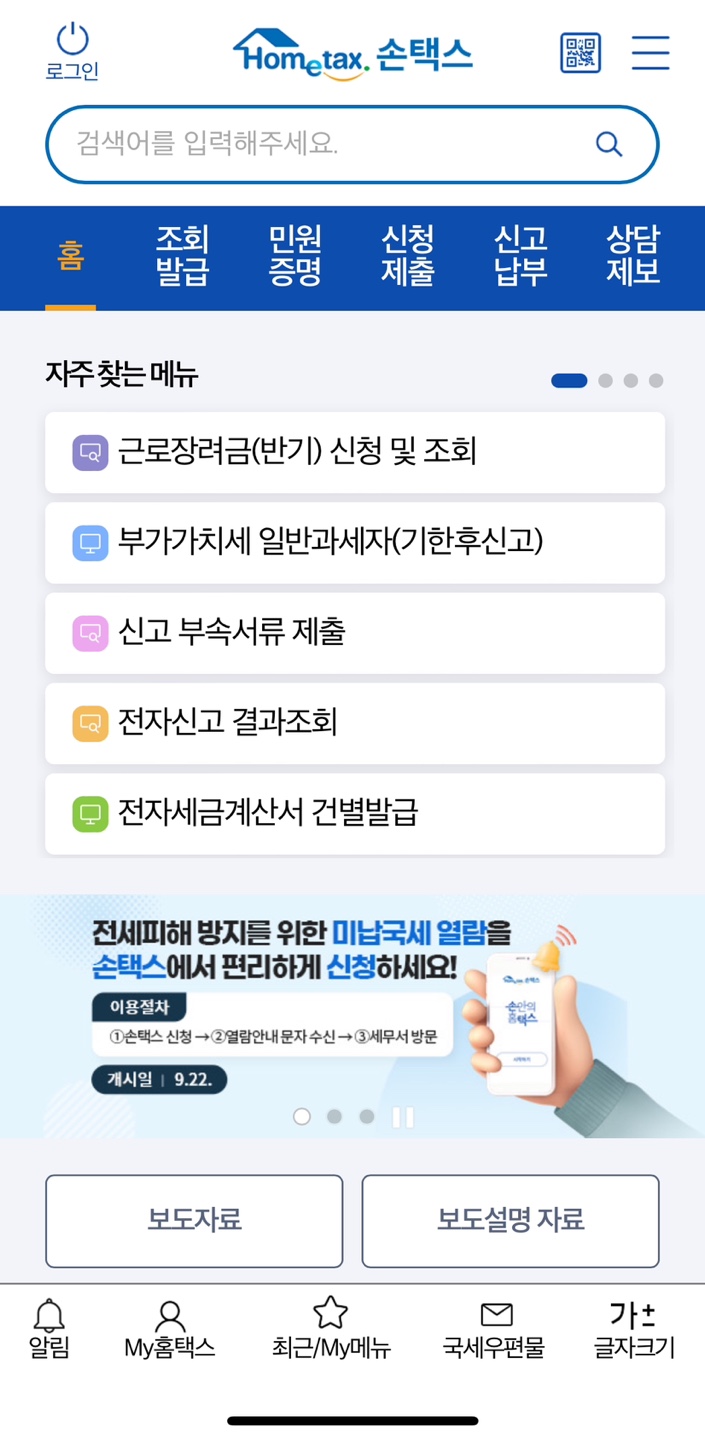 - 로그인: 고용주는 국세청 웹사이트에 로그인합니다.