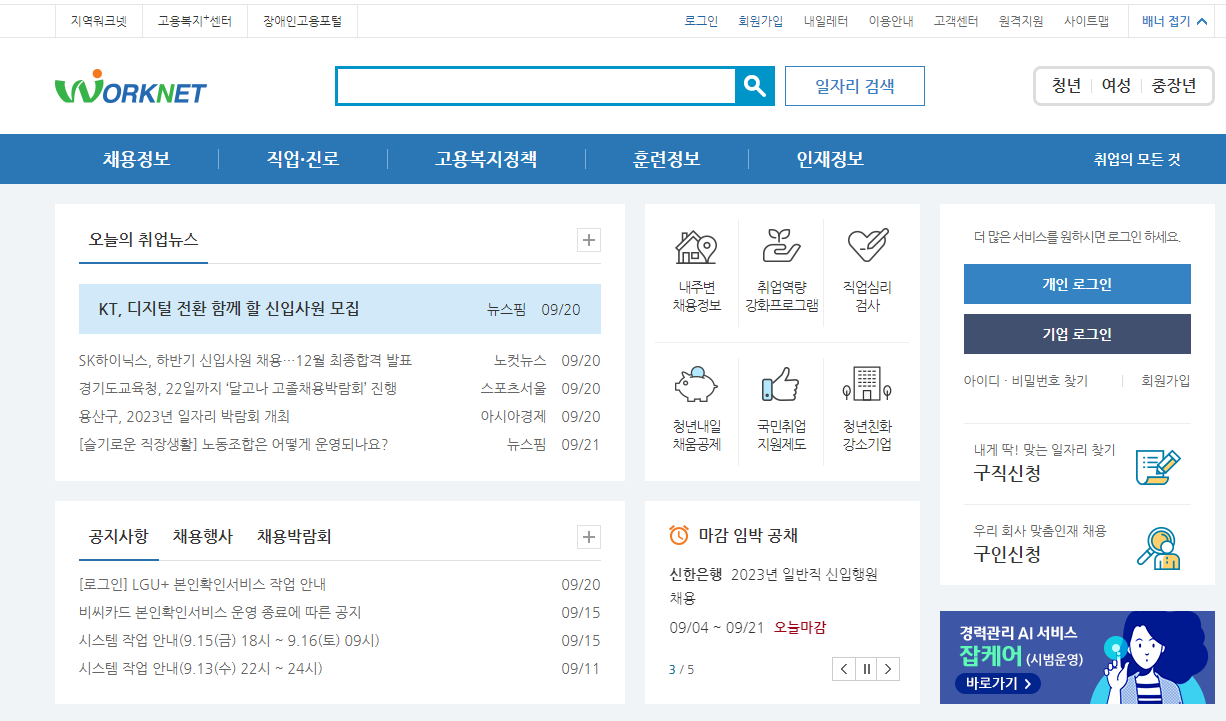 워크넷 구인구직: 일자리를 찾거나 고용하세요