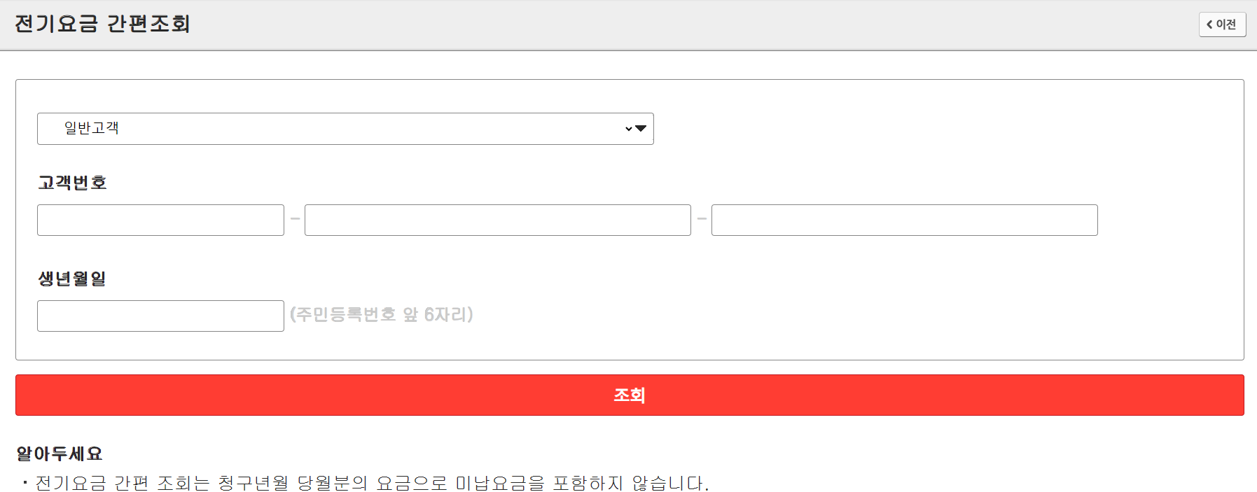 로그인한 후, 대시보드 또는 요금 조회 섹션으로 이동합니다. 거기에서 현재 월 또는 이전 월의 전기요금을 조회할 수 있는 옵션을 찾을 수 있습니다.